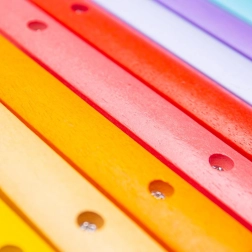 A biztonságos csavarok biztosítják a billentyűk szilárd rögzítését, ami védi a gyerekeket a játék során. Ez a xilofon ideális a koordináció és a színek érzékelésének fejlesztésére.