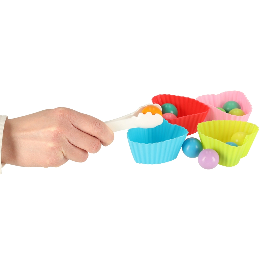 - Változatos tevékenységek: mágneses horgászat, hernyófogás, válogatás szilikon tálkákba, csipesszel való áthelyezés, haladás a játéktáblán.