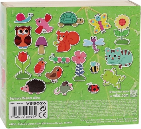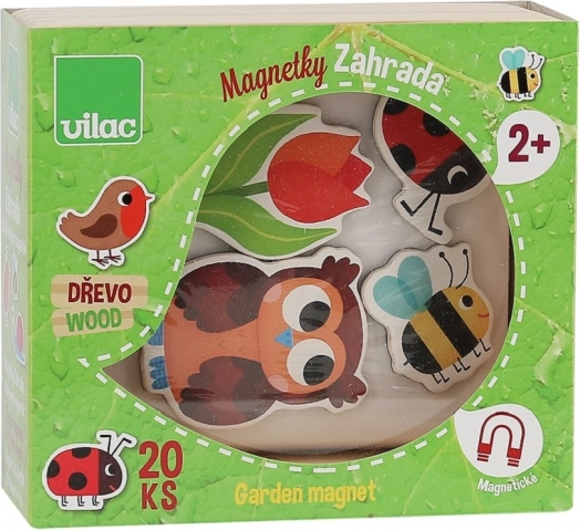 Fedezze fel a kreatív lehetőségeket a Vilac fa mágnesekkel, amelyek kert motívummal rendelkeznek. Ezek a robusztus és környezetbarát módon előállított darabok korlátlan játéklehetőségeket és dekorációkat kínálnak. Élvezze a gyönyörű, színes illusztrációkat, amelyek díszíthetik a hűtőt vagy a gyerekszobát.