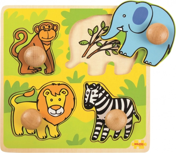 Amikor a gyerekek minden elemet a megfelelő helyre tesznek, egy életteli szafari kép áll össze. A nagy fogantyúknak köszönhetően az elemeket a legkisebb kezek is jól meg tudják fogni, a kirakás pedig ösztönzi az állatok megnevezését, a szókincs bővítését és a kéz–szem koordináció gyakorlását.