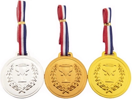 Készletünk tartalmaz három műanyag érmet, amelyek nagyszerűen szolgálnak gyermekversenyeken és játékokon: