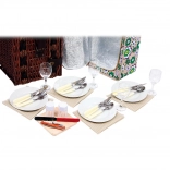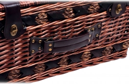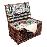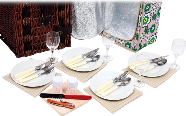 A kosár mindent tartalmaz, ami a családi vagy baráti piknikezéshez szükséges: tányérok, evőeszközök, borospoharak, kés, borstartó, sótartó és szalvéták.
