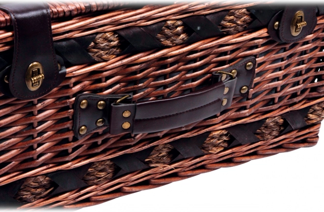 A Deluxe piknikkosár ideális választás azoknak, akik a funkcionalitást és az esztétikumot egyaránt értékelik. A kosár teljes felszerelést tartalmaz négy személy részére, beleértve a tányérokat, evőeszközöket, borospoharakat, kést, borstartót és sótartót. A megjelenés a rusztikus bájt modern praktikummal ötvözi.