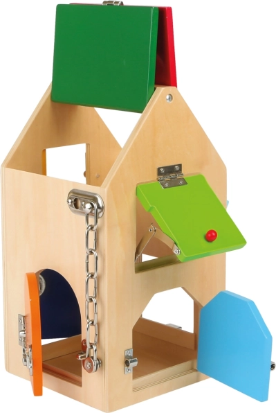U-lakat, hengerzár, lánc, pántok és más mechanizmusok tanítják a gyerekeket türelemre, logikára és az ujjak pontos mozgatására.