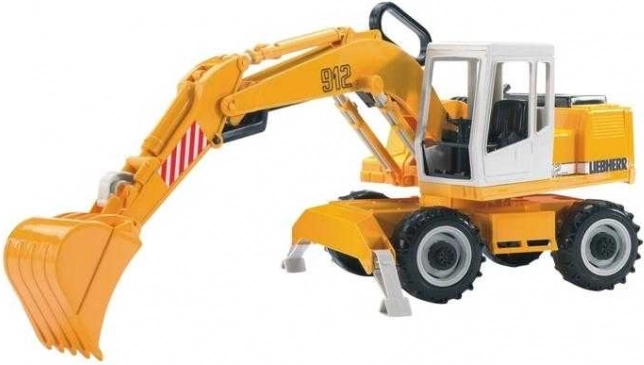 Bruder Liebherr kotrógép egy hűséges modell az építési géphez, működőképes kanállal, stabilizátorral és forgatható alapzattal, ami tökéletes kiegészítővé teszi minden kis építő számára.