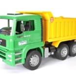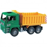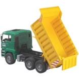 A teljesen funkcionális, műanyagból készült BRUDER MAN billenő teherautó 1:16 méretarányban remek választás minden gyermeknek, aki szereti az építkezéseket és a valósághű játékot. A fülke felhajtható, így láthatóvá válik a részletesen kidolgozott motor, a külső tükrök felhajthatók, a plató pedig könnyen megemelhető az ömlesztett anyagok kirakodásához.