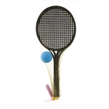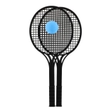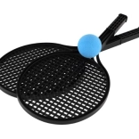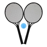 Élvezze a szórakozást és az aktív pillanatokat a puha tenisz készlet segítségével, amely két elegáns fekete ütőt és kék hablabdát tartalmaz, ideális a strandhoz vagy a kerthez.
