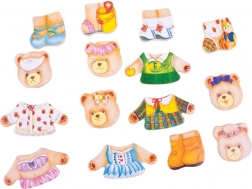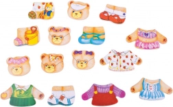 A test- és ruhadarabok gazdag készletének köszönhetően a gyerekek tucatnyi kombinációt alkothatnak, miközben gyakorolják a ruhadarabok, színek és hangulatok megnevezését. A praktikus fa doboz otthon és utazás közben is átláthatóan egyben tartja az összes elemet.
