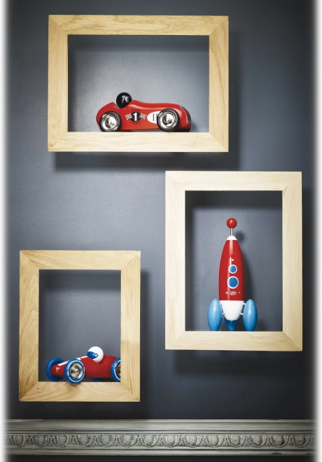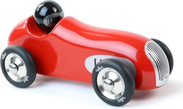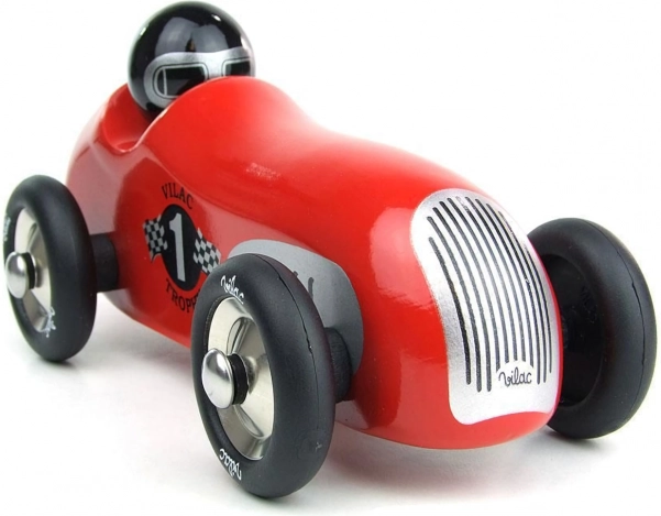 Piros történelmi versenyautó Vilac remek választás gyerekeknek és felnőtteknek egyaránt. Kiváló minőségű lakkozott fából és fémből készült, ez az autó ideális játékhoz, valamint stílusos dekorációként.
