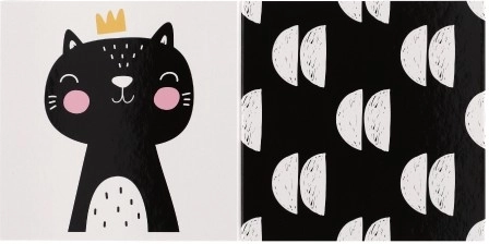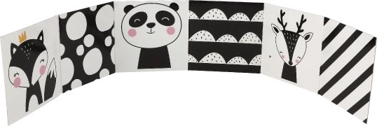 Váltakozó kontrasztos formák és bájos illusztrációk skandináv stílusban felkeltik a gyerekek érdeklődését, és később segítenek felismerni az egyes erdei állatokat. A harmonikaszerű, praktikus kialakítás lehetővé teszi a könyv kihajtását és a baba elé állítását akkor is, ha még nem tud önállóan lapozni.