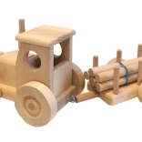 Fedezze fel a szépséget és az egyszerűséget ebben a gondosan megmunkált fa traktorban utánfutóval. Simára csiszolt felülete természetes ékességet hoz otthonába. A traktor masszív, éles szélek nélkül, ezáltal biztonságos választás 3 éves kortól. Precíz kialakítása és mozgatható elemei növelik a vonzerejét és interakciót játék közben. Ez a termék nemcsak tartós, de vonzó is a kreatív játékhoz, legyen az otthon vagy homokozóban.