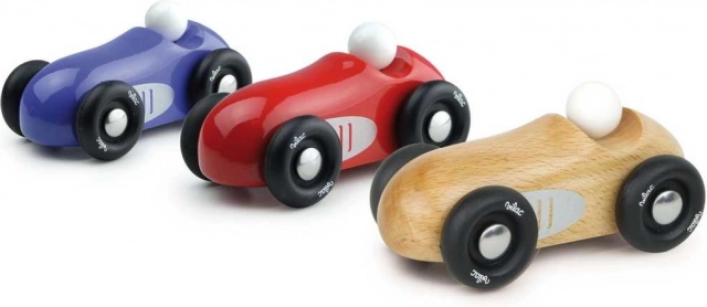 Ajándékozzon klasszikus játékélményt – a VILAC mini versenyautó lakkozott fából, natúr színben. A strapabíró felépítésnek és a gumírozott kerekeknek köszönhetően a haladás sima és csendes, ideális a mindennapos játékhoz. Letisztult megjelenése stílusos dekorációként is megállja a helyét.