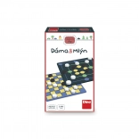A Dino utazó dáma és malom ideális választás családi kirándulásokhoz, nyaraláshoz és utazás közbeni várakozáshoz. A kétoldalas tábla egyszerűen megfordítható – az egyik oldalon 8 × 8-as sakktábla a dámához, a másikon a klasszikus malomtábla. Egy korongkészlet mindkét játékhoz elegendő, így nincs szükség semmi másra.