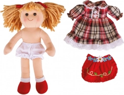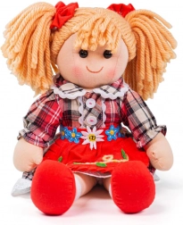 Mandie puha textilteste, fonalból készült lágy haja és barátságos mosolya ideális az ölelgetéshez és az első játékokhoz.