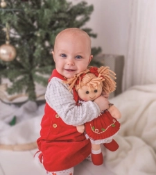 A Mandie textilbaba gyönyörűen színes, puha kis társ a legkisebbeknek. A meleg tapintású textilek, a fonalból készült finom haj és a bájos mosoly ölelgetésre és játékra hív. A hímzéssel és csipkével díszített, stílusos kockás ruha hagyományos bájt kölcsönöz a babának, amit a gyerekek imádnak.