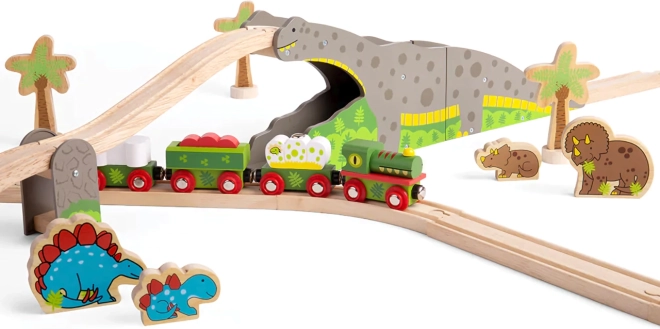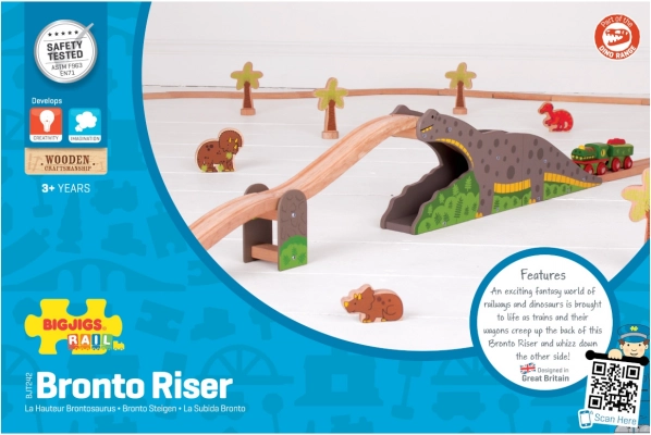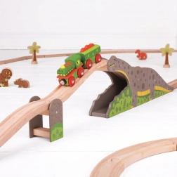 Fedezze fel a szórakoztató dinoszaurusz hidat fa vonatpályákhoz, ahol a vasút találkozik a prehisztorikus kalanddal. A vonat áthalad a „brontoszaurusz” hátán és alatta is, ami izgalmat, fantáziát ad a játékhoz és fejleszti a finommotorikát. Kompatibilis a legtöbb fa vonatpályával a piacon.
