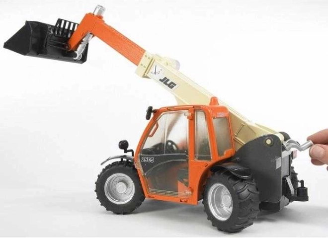 A teleszkókgém a gép hátulján található tekerővel emelhető, és akár 40 cm hosszúságig kihúzható. Az első kanál billenthető, és könnyen cserélhető BRUDER tartozékokra (raklap, csörlő, villa – BR2318). A törhetetlen polikarbonát fülke nyitható ajtókkal és a vonóberendezés autentikus élményt nyújt az építőipari gépek irányításában.