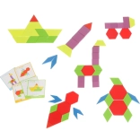 A gyermekek összeállíthatják a mellékelt kártyák alapján vagy saját mintákat is kitalálhatnak, ami növeli a képzeletüket. A praktikus tárolózsáknak köszönhetően a kirakó könnyen hordozható, így bárhová magával viheti.