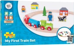 A kör alakú pálya mozdonnyal, két vagonnal és kiegészítőkkel tökéletes az első vasúti történetekhez és az önálló játékhoz 3 éves kortól.