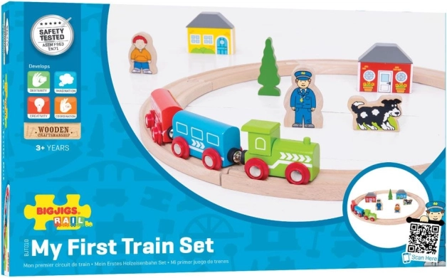 Fedezd fel az első utazások varázsát ezzel a színes fa vonatpályával a BIGJIGS RAIL-től. A készlet 19 darabot tartalmaz, köztük mozdonyt, vagonokat, mágneses kapcsolókat és kiegészítőket, mint házak, fák és figurák. 3 éves kortól ajánlott, fejleszti a képzelőerőt, a finommotorikát és a koordinációt. Minőségi, felelősen beszerzett anyagokból készül, és kompatibilis a legtöbb fa vonatpályával a piacon.