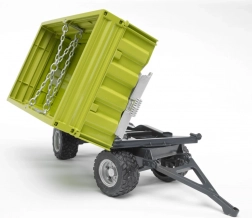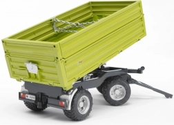 Ez a részletgazdag FLIEGL utánfutó ideális kiegészítő a BRUDER 3000-es sorozatú traktoraihoz. Az elülső részen található kapcsolóval könnyedén kiválasztható a billentés iránya – hátra, balra vagy jobbra. Oldalirányú billentésnél az oldalfalak nyithatók, a magasító felépítmények pedig igény szerint eltávolíthatók.