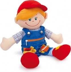 A Small Foot Chiara és Massimo textilbabáit úgy tervezték, hogy a gyerekek természetes módon gyakorolják a fogást, a szem–kéz koordinációt és a türelmet. A színes öltözetek valósághű öltözködési elemeket kínálnak – a gomboktól a tépőzárakig –, amelyek arra ösztönzik a gyerekeket, hogy próbálgassák a be- és kikapcsolást. A puha, kellemes textil és a hímzett arcok a legkisebbek számára is biztonságos ölelgetést nyújtanak.