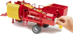Ez a nagy és részletesen kidolgozott burgonyabetakarító modell jelentős funkcionális részeket tartalmaz, mint például a szállítószalag, amelyet könnyen vezérelhet kézi tekerővel. A szalagból szállítják a burgonyát közvetlenül a tárolóba, amely igény szerint állítható.