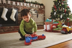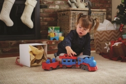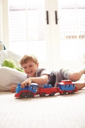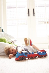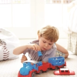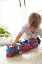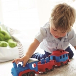 Felszállásra kész! A Green Toys robusztus vonata mozdonyból és két kocsiból áll, és kreatív játékot kínál otthon és a szabadban egyaránt. 100% újrahasznosított műanyagból készül tejespalackokból, nem tartalmaz BPA-t, PVC-t vagy ftalátokat, és nincs fém tengelye vagy külső festése. A készlethez két medve kalauz is tartozik, és minden elem könnyen szétkapcsolható és tisztítható a mosogatógépben.