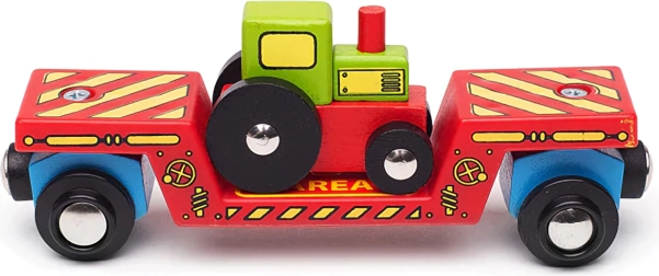 Bővítsd a fából készült vonatpályát egy masszív tehervagonnal, traktorral és két sínnel a Bigjigs Rail-től. A szett kettős felhasználást kínál – a gyerekek önállóan is játszhatnak a traktorral, vagy felrakodhatják és elszállíthatják a nagy teherbírású vagonon. A mágneses kapcsolók könnyű összekapcsolást biztosítanak más szerelvényekkel, a piacon kapható legtöbb fa sínrendszerrel való kompatibilitás pedig széles bővítési lehetőségeket garantál.