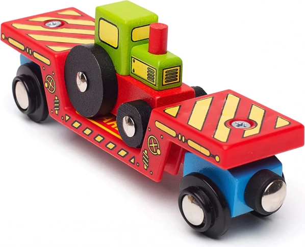 Ez a színes szett még több fantáziát hoz a gyerekek vasút-világába. A traktort le lehet venni a vagonról és farmjátékhoz használni, vagy a rakodófelület segítségével feltenni és útnak indítani a síneken. A mágneses kapcsolóknak köszönhetően a vagon gyorsan csatlakozik a mozdonyhoz és más kocsikhoz, így a meglévő szerelvény bővítése pillanatok kérdése.