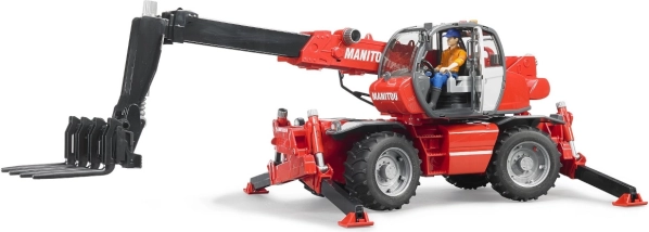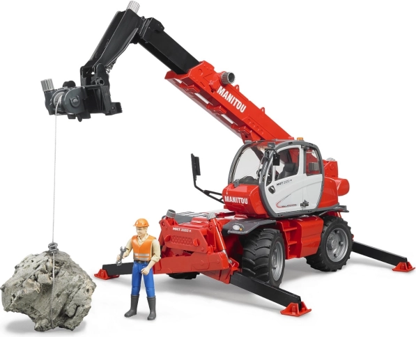 A Bruder márka MANITOU MRT 2150 teleszkópos rakodójának részletesen kidolgozott modellje örömet szerez a kis építőknek és gyűjtőknek egyaránt. 360°-ban forgatható fülkével, négykerék-kormányzással a kis fordulókörért és cserélhető szerszámokkal (kanál, villa, raklapkosár) rendelkezik. A stabilitást négy teleszkópos támasz biztosítja. Minőségi, strapabíró műanyagból, Németországban gyártva.