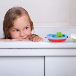 A három színes csónak úszik, és használható a kádban, a medencében és szárazföldön is. Az egyszerű forma és az élénk színek játékra csábítanak.