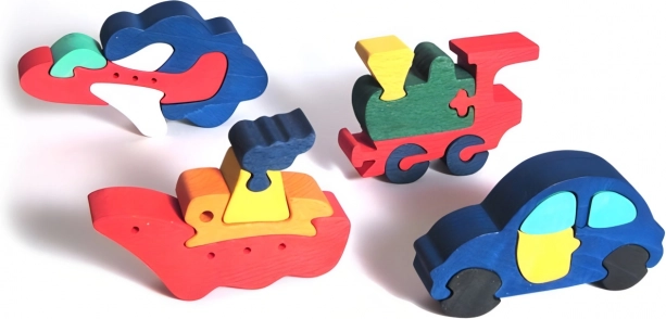 Fa betétes kirakó – közlekedési eszközök készlet