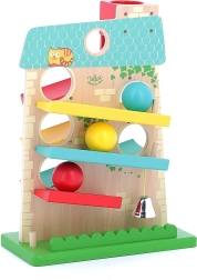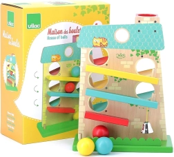 Fedezd fel a mozgás és a hang varázsát a VILAC kaszkádos golyóházával. Átgondolt kialakításának köszönhetően a golyók három rámpán haladva, oldalról oldalra egyenletesen gurulnak, és végül a gyerekek által kedvelt fém csengő csilingelése zárja a futamot. A fa és fém strapabíró kivitele hosszú élettartamot és biztonságos játékot garantál.