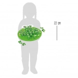 Színes, béka alakú fa tábla virágokkal és bogarakkal, amely játékra ösztönöz és fejleszti a képzeletet. Az átlátható furatelrendezésnek köszönhetően a gyerekek könnyen eligazodnak.