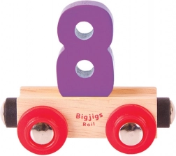 Ez a 8-as számú vagon minden fa vonatpályát egy szórakoztató és didaktikus elemmel bővít. A levehető szám könnyen cserélhető betűkre vagy más számjegyekre, így a gyerekek saját neveket, feliratokat és számokat rakhatnak ki. A mágneses csatlakozóknak köszönhetően a vagon gond nélkül összekapcsolható a kedvelt fa vonatrendszerek mozdonyaival és vagonjaival.