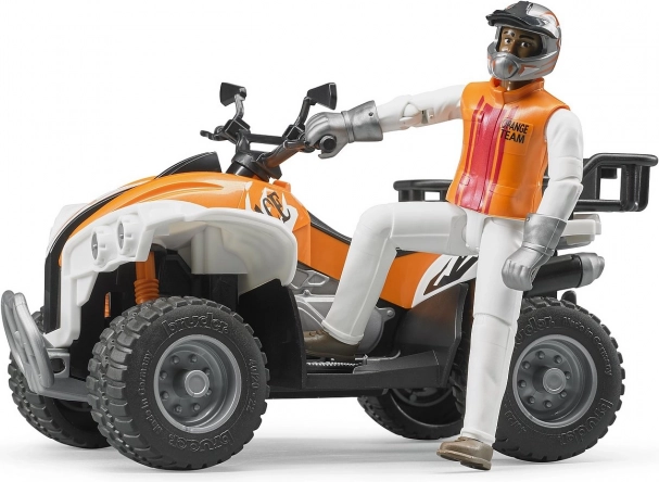 A BRUDER bworld szett valósághű quadot és vezetőt kínál kreatív, akciódús játékhoz. A modell hűen utánozza a valódi gépet, beleértve az első és hátsó rugózott tengelyeket, a részletes abroncsokat és a masszív felépítést a gyerekszoba „terepére”.