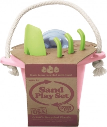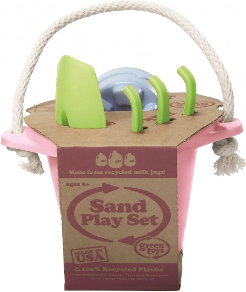 A Green Toys felelősségteljes játékokat kínál 100% újrahasznosított műanyagból, mely PVC-, biszfenol- és ftalátmentes. Ez a rózsaszín homokozó készlet tartalmaz:
