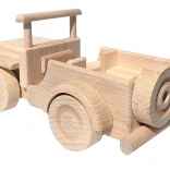Fedezze fel a gondosan kidolgozott, bükkfából készült fa játékautót, amely természetes megjelenésével és magas tartósságával tűnik ki. Felülete kizárólag viaszolt és polírozott, vegyi kezelések és festékek nélkül. Az autón forgatható kerekek, lekerekített élek találhatók, és homokozóban is használható, így ideális a 3 éves kortól biztonságos játékhoz.