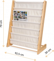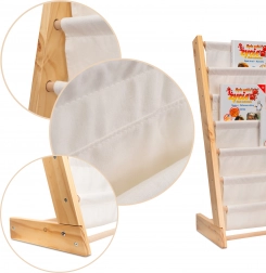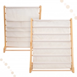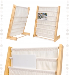 Elegáns és praktikus fa könyvespolc, amely könnyedén a gyermekszoba részévé válik. Akár 6 textilpolcot is kínál, amelyek elegendő helyet biztosítanak a könyveknek, színezőknek és egyéb gyermekfelszereléseknek. A polc magassága 76,5 cm, amely lehetővé teszi, hogy a gyerek könnyedén elérje az összes polcot.