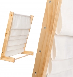 A polc minőségi fából és textilből készült, ami egyszerű tisztítást tesz lehetővé. A masszív szerkezet és tartós anyagok hosszú évekig szolgálnak, és elbírják a nehezebb könyveket is, ahogy gyermeke nő.