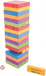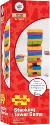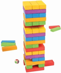 Építő és ügyességi játék, amely az egész családot magával ragadja. Dobj a színes kockával, húzd ki a megfelelő elemet, és tedd a tetejére – a torony nő, az izgalom fokozódik! A minőségi fa kivitelnek és a telt színeknek köszönhetően a játék tartós, biztonságos és látványos.
