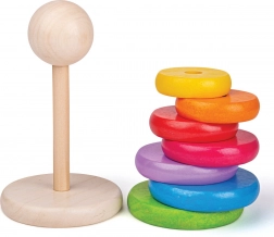 Ez a fa rakosgató figura ideális játék a finommotorika és a kéz–szem koordináció fejlesztéséhez. A gyűrűk méret szerinti rakosgatása nemcsak szórakoztató, hanem megtanítja a gyerekeket a méretek és színek felismerésére is.