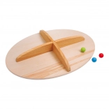 Az egyensúlyozó deszka tanúsított, természetes fából készült és ökológiai, tartós kivitelű. A gyerekek az ovális platformon állva próbálhatják meg a színes golyót végigvezetni a kivágott labirintuson, miközben egyensúlyoznak. Ez az izgalmas játékösztönző módszer versenyt és kulcsfontosságú motorikus készségek fejlesztését támogatja.