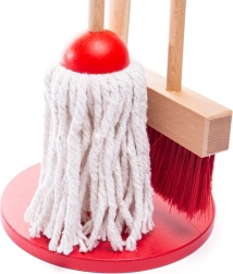 A piros színű gyerek takarítókészlet ösztönzi a kreatív játékot, és természetes módon vezeti a gyerekeket a házimunkák elsajátításához. A masszív fa szerkezetnek és az átgondolt állványnak köszönhetően minden elemnek megvan a helye, így a játék utáni elpakolás éppoly egyszerű, mint maga a szórakozás.