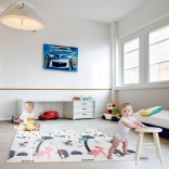 A játszószőnyeg előnyei közé tartozik a kopásállóság és a könnyű karbantartás - csak egy nedves ruhával kell áttörölni. A szőnyeg minden kis autórajongót lenyűgöz, és a gyermeki kreativitást ösztönözve biztonságosan felfedezhetik a világot.