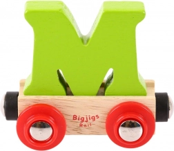 Ez a minőségi fa vagon M betűvel játékos, oktató elemmel bővíti bármelyik vonatpályát. A betű levehető, szabadon kombinálható más betűkkel vagy számokkal – alkoss nevet, becenevet vagy üzenetet. A mágneses kapcsolók könnyű összekapcsolást biztosítanak a Bigjigs Rail rendszer többi vagonjával és mozdonyával, valamint más elterjedt fa vonatpályákkal.