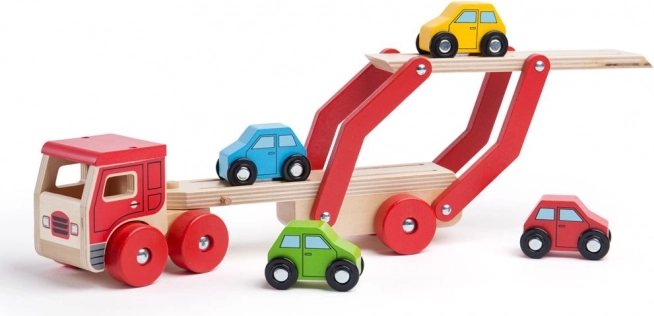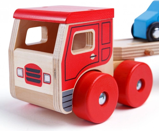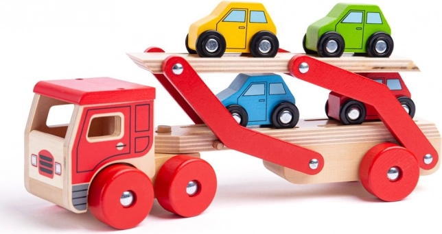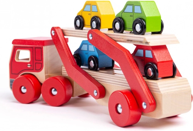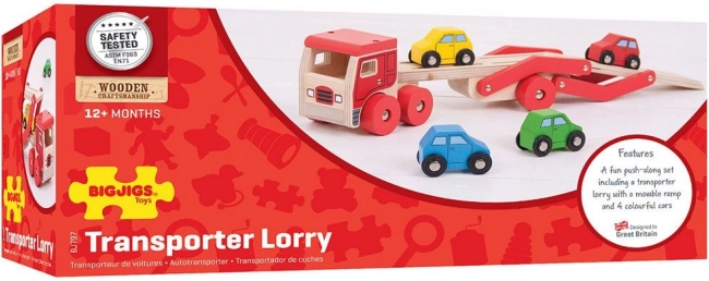 A Bigjigs Toys végtelen szórakozást kínál a fa autószállító kamionnal, amely nemcsak órákon át tartó játékot biztosít, hanem segíti a szem-kéz koordináció fejlődését is. A vontató felső része könnyen leengedhető, így a kis járművek fel- és lehajtása gyerekjáték.