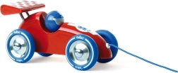 Ez a bájos húzós versenyautó mozgásra ösztönzi a gyerekeket, miközben támogatja motorikus fejlődésüket. A robusztus fa szerkezet, a sima formák és a biztonságos anyagok a szárnyas, versenyzőt ábrázoló autó attraktív megjelenésével párosulnak.