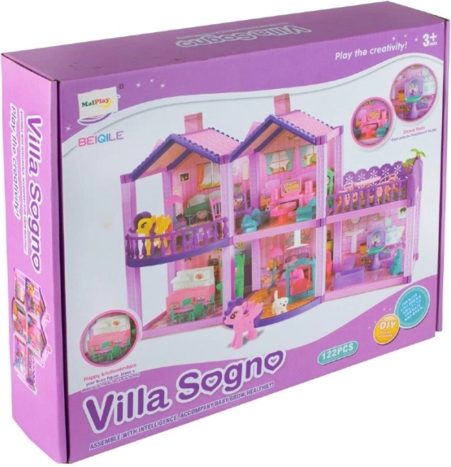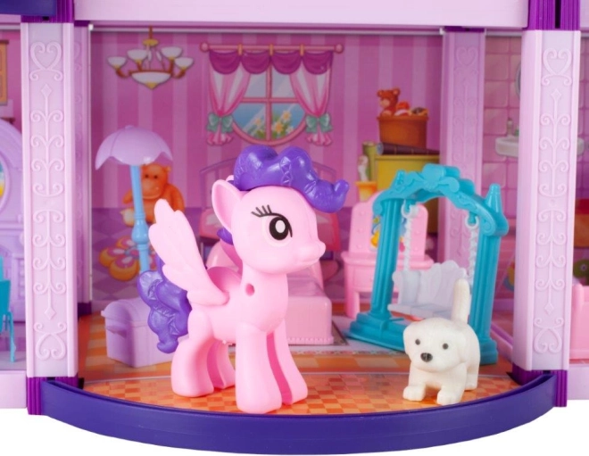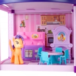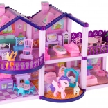 Egyedi, műanyagból készült babaház, amely ideális hosszú órákon át tartó szórakozáshoz minden kislánynak és barátainak. A ház tökéletes a készlet részét képező pónik és kutya, illetve babák számára. Ebben a rezidenciában mindenki úgy érzi magát, mint egy palotában. A nagy házhoz nagyobb bútordarabok is tartoznak, így a játék könnyebb és élethűbb. A belső terek tökéletesen tükrözik az igazi otthon hangulatát.